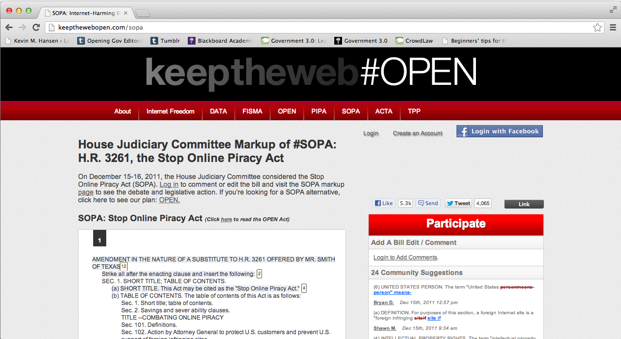 The platform was first used by Congressman Issa to crowdsource the #OPEN Act, an alternative to the Stop Online Piracy Act (SOPA) and the PROTECT IP Act introduced in late 2011.[1]