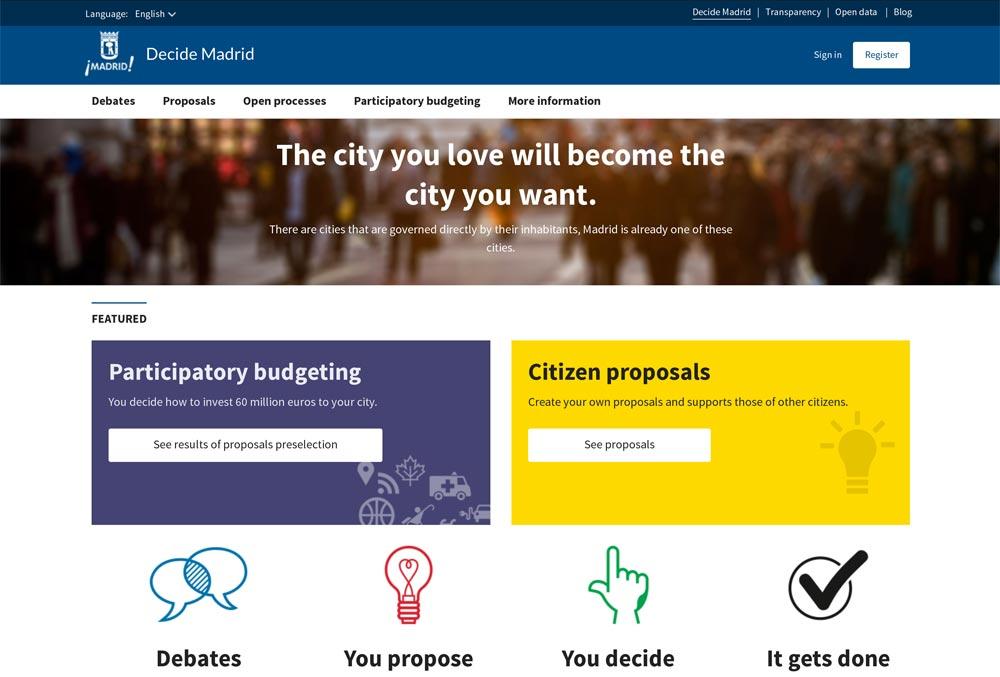 Decide.Madrid.es Main Page: https://decide.madrid.es/ [Spanish]