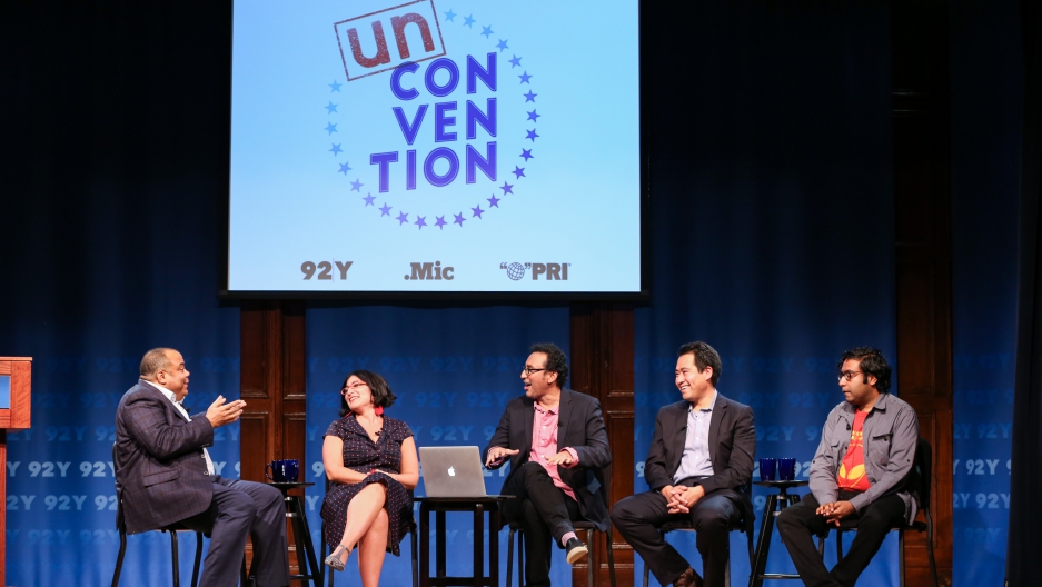 Lead image: " Eric K. Ward, from left, Negin Farsad, Aasif Mandvi, Israel Ortega and Hari Kondabolu discuss diversity and American identity at the 92nd Street Y in New York during The UnConvention, October 17, 2016." Credit Michael Priest/PRI, http://bit.ly/2Vr1dlv.