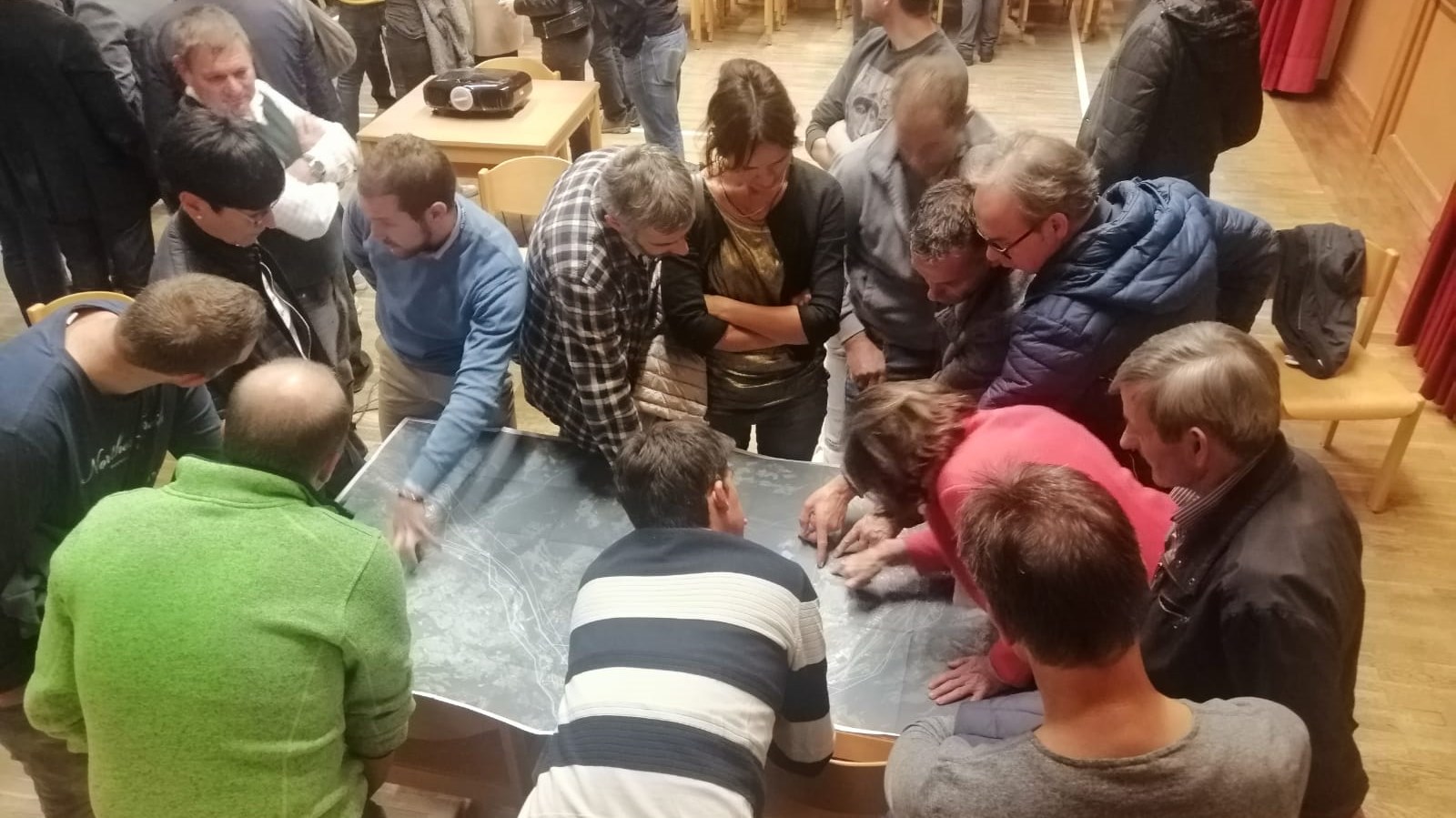 Terna Meets is a specific format used by the Terna company (in 2018-2019) for comparison and dialogue with citizens interested in the works / interventions planned, throughout Italy. In the case of the Val d'Isarco, there is no clear schedule of what happened during the wide time slots (6, sometimes 9 hours) in which Terna's technicians were available for clarification. There are photos of the meetings that give the idea of some moments (a conference-style plenary session; small groups around tables with cards: vertical panels in Urban Center style). These are changing, flexible spaces for dialogue, aimed at receiving and welcoming (given the availability of time) a large number of interested parties and at the moment organizing communications based on the number of visitors.