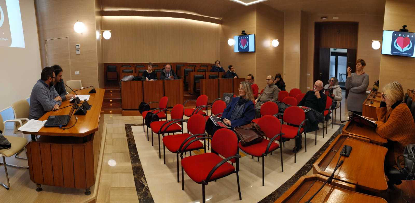 16/1/20 Bari, Presidency of the Puglia Region, Sala di Jeso, Press conference to present the process (11 - 13). 48 participants (declared as counted) and 25 actors involved, including, in addition to the promoters already mentioned among the organizational partners: Movimento per la Decrescita Felice, Orto Urbano Terlizzi, APS Piantiamola, Mediterranean Astronomical Institute, Agricultural Institute, Casa Ain Karem, Coop . Soc. Tracceverdi, Criminal Institute for minors of Bari, Confcooperative Puglia, Masseria Storica Pilapalucci. Two 16-minute shots taken with a mobile phone are available on FB, however of poor quality. Two speakers are present at the main table (one is Angelo Santoro of the Forum and member of a social agricultural cooperative), a standing moderator (Andrea Gelao), a consultant from the participation office (Micaela Deriu) sitting in a side niche. The room has a frontal layout but a discussion has started with the seated present who do not seem to exceed 6 people at all. A tele-journalistic service by the local channel Canale 7 also follows.
