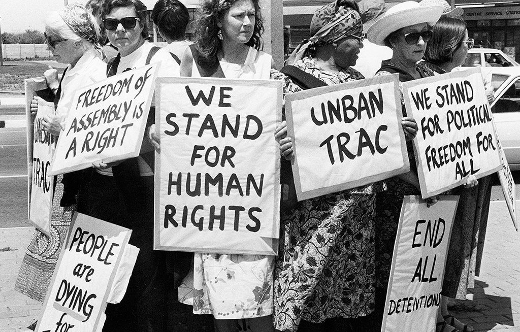 The organisation has a long history of working against injustice in the country. The Black Sash was established in 1955 by a small group of white middle-class women (who were predominantly English-speaking) when they formed an organization called The Women's Defence of the Constitution League. Founder members were Jean Sinclair, Ruth Foley, Elizabeth McLaren, Tertia Pybus, Jean Bosazza and Helen Newton-Thompson (among others). The organisation was formed as a protest to oppose the Senate Bill that aimed to remove coloureds from the common voter’s role as the women of Black Sash believed this action was against the ‘spirit' of the constitution. Though the organisation was established as means to highlight the unconstitutional actions taken by the apartheid government, it became a platform for liberal women to oppose the apartheid policies through protests, marches and vigils. The name Black Sash originated from the women’s use of black sashes as a symbol to mourn the death of the constitution.